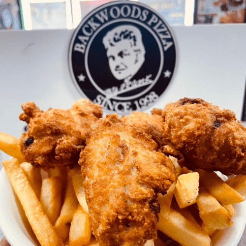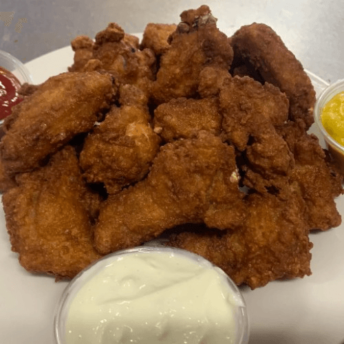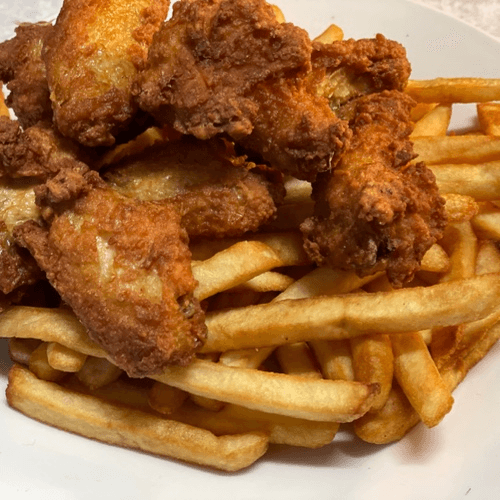 Boston Wing Ding Dinner Crispy, golden-brown Wing Dings cooked to perfection—juicy on the inside, crunchy on the outside, and packed with flavor! Served with a fresh side salad and your choice of classic fries, crispy seasoned fries, homemade onion rings, or fluffy rice, this is the ultimate comfort meal done right!