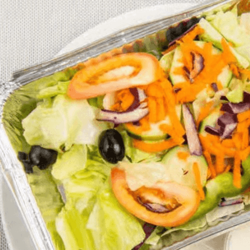 Fresh, crisp, and full of flavor! A refreshing mix of iceberg lettuce, juicy tomatoes, shredded carrots, crisp cucumbers, black olives, pepperoncini, and red cabbage, creating the perfect balance of crunch and zest. Served with pita bread and a side of Italian dressing, this salad is simple, delicious, and always satisfying! 🥗🔥