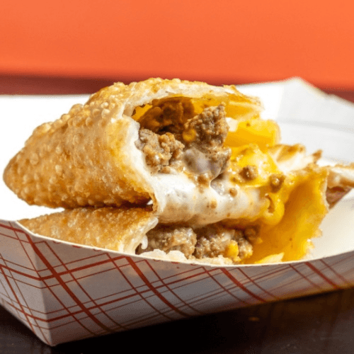 A crispy, cheesy classic! Homemade pizza sauce, a melty blend of mozzarella and white cheddar, and bold, savory pepperoni are rolled up in thin dough and baked to golden perfection in our pizza oven. Served with a side of creamy ranch dressing, this is a perfectly crispy, flavor-packed bite every time! 🧀✨