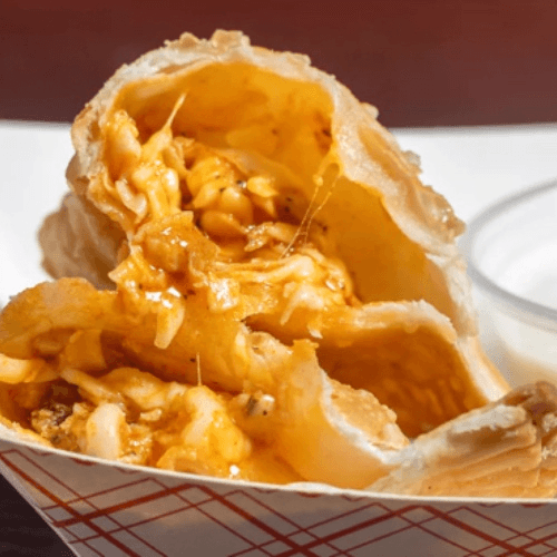 chickGolden, crispy pastelitos stuffed with juicy marinated grilled chicken, chopped and mixed with a melty blend of mozzarella and white cheddar. Fried to perfection, these cheesy, savory bites are crispy on the outside, loaded with flavor on the inside—pure satisfaction in every bite! 🥟🔥🧀en and cheese